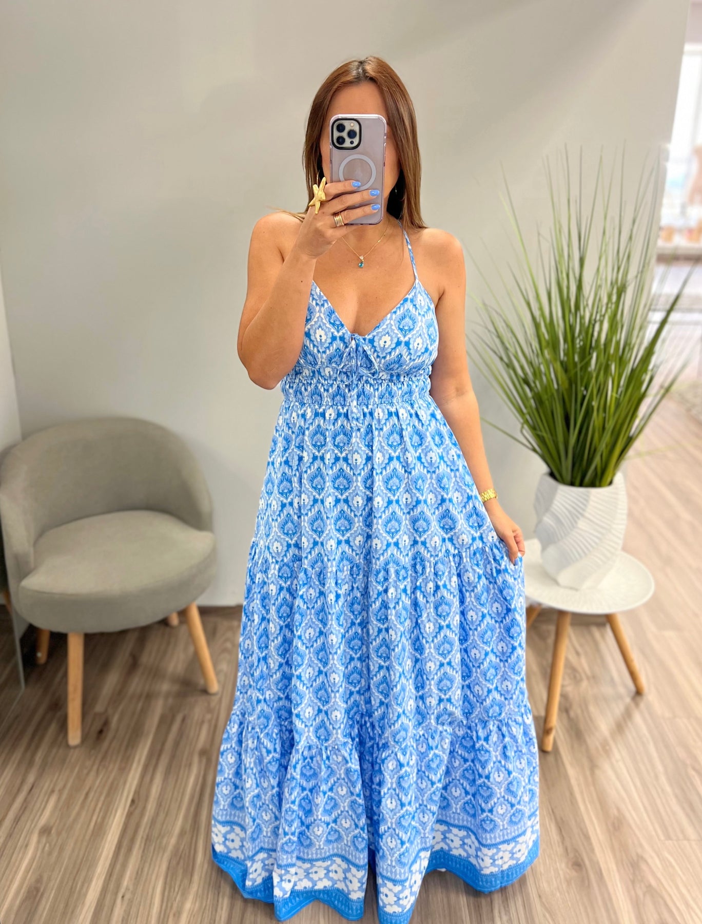 Blue A Printed Woven Fabiola Maxi Dress