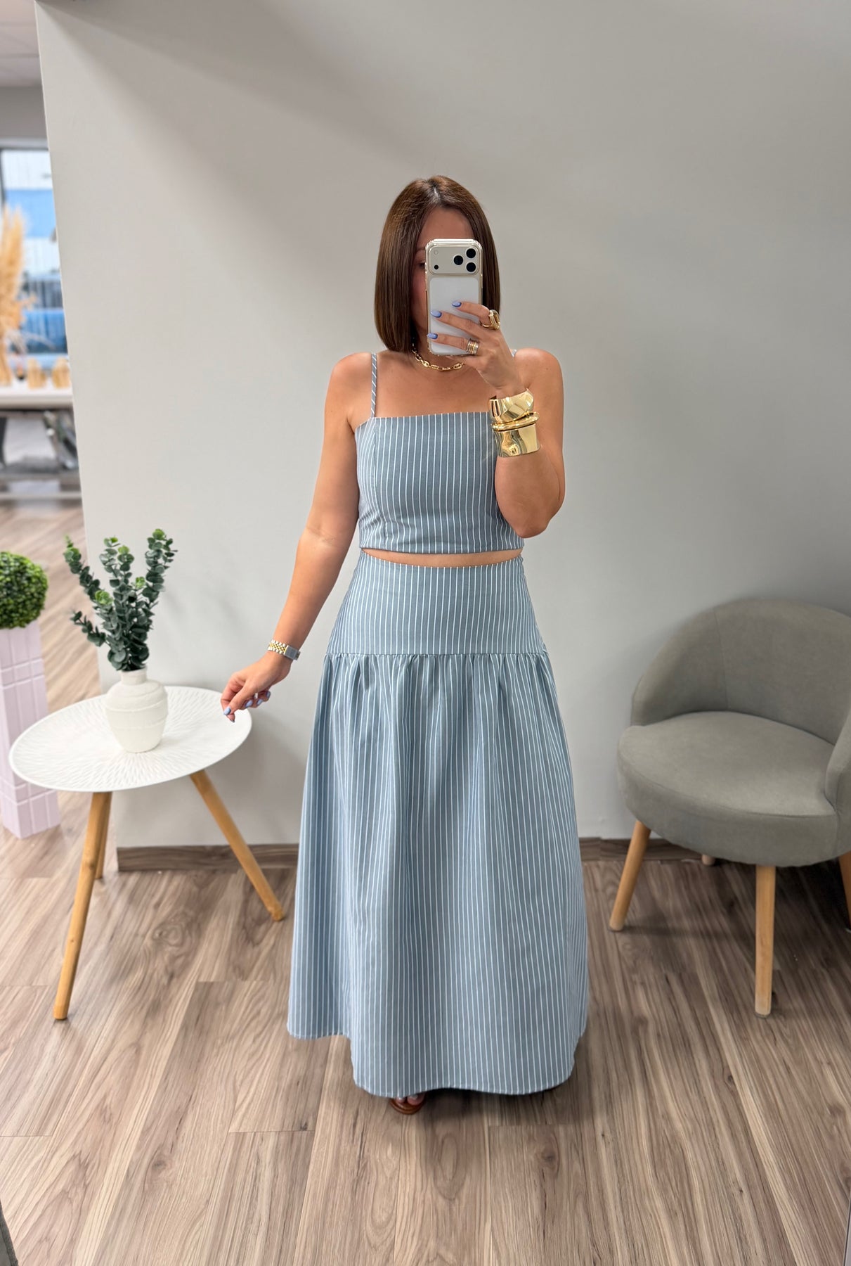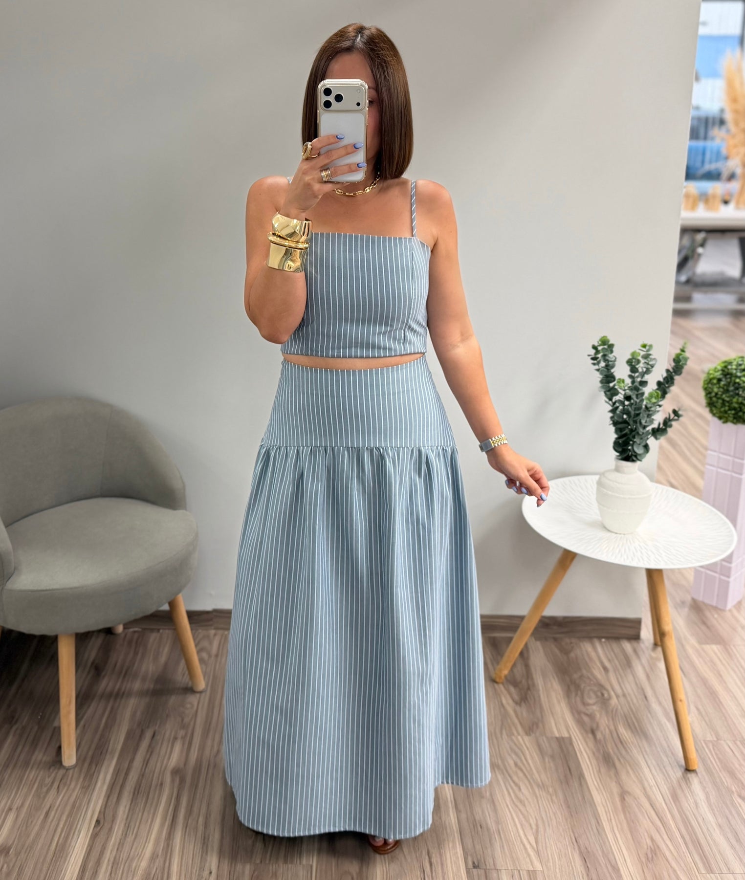 Corre al size, el top tiene elástico y se ajusta en los manguillos y la falda cierra en la parte de atrás con zipper, el de la foto es size small.