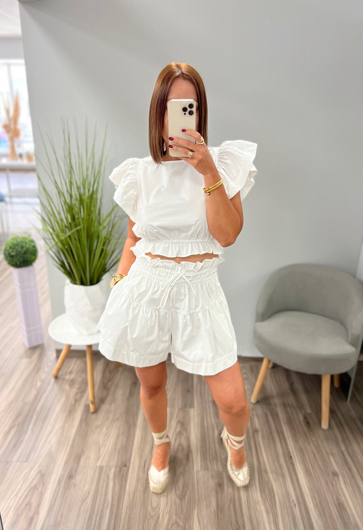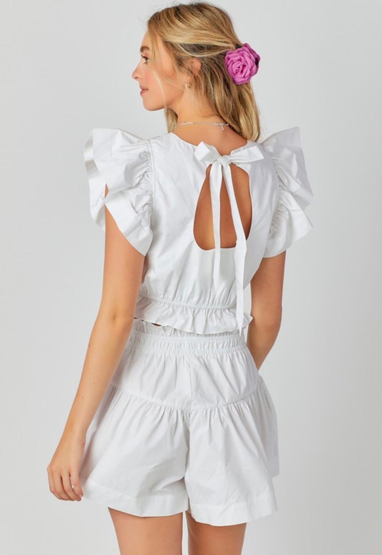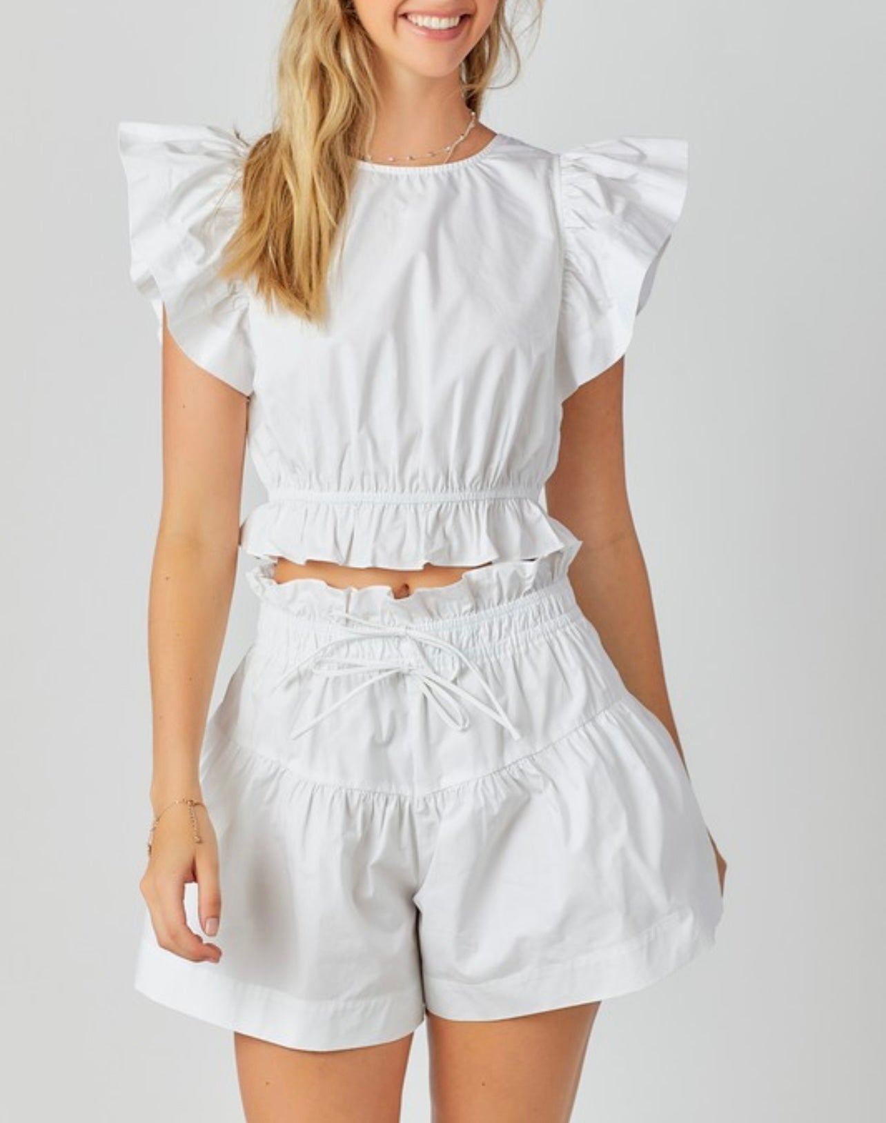 El de la foto es size small, corre al size, no tiene zipper el pantalón ni el top, tienen elástico
