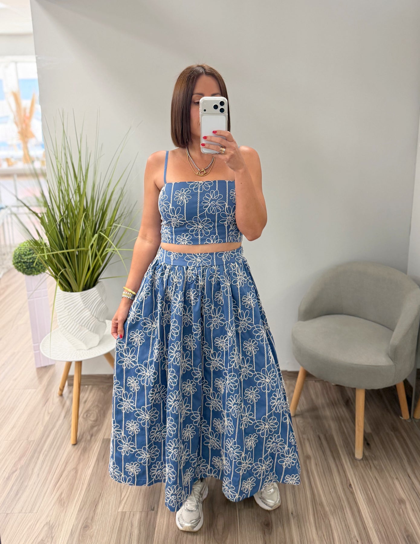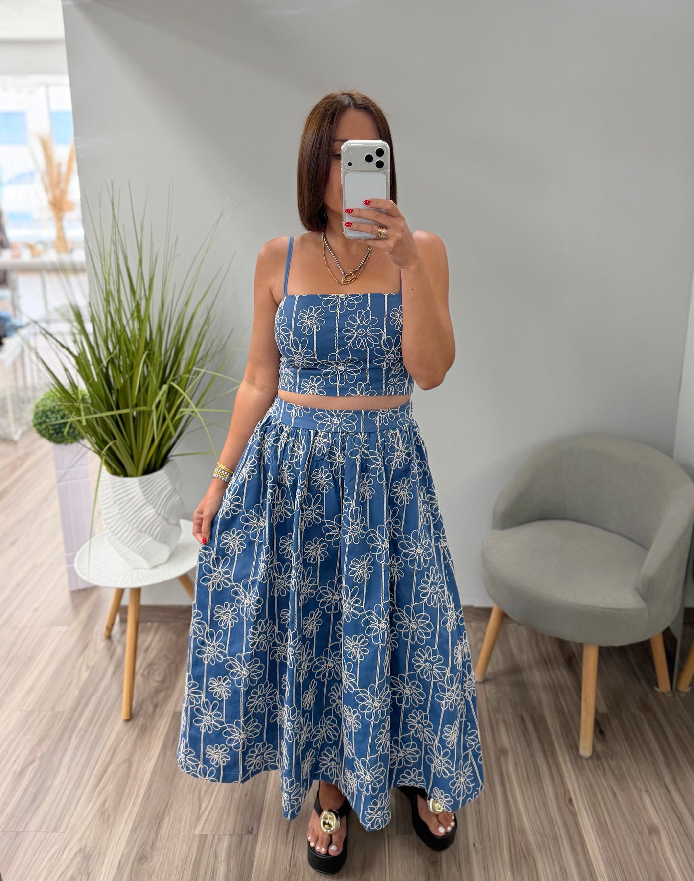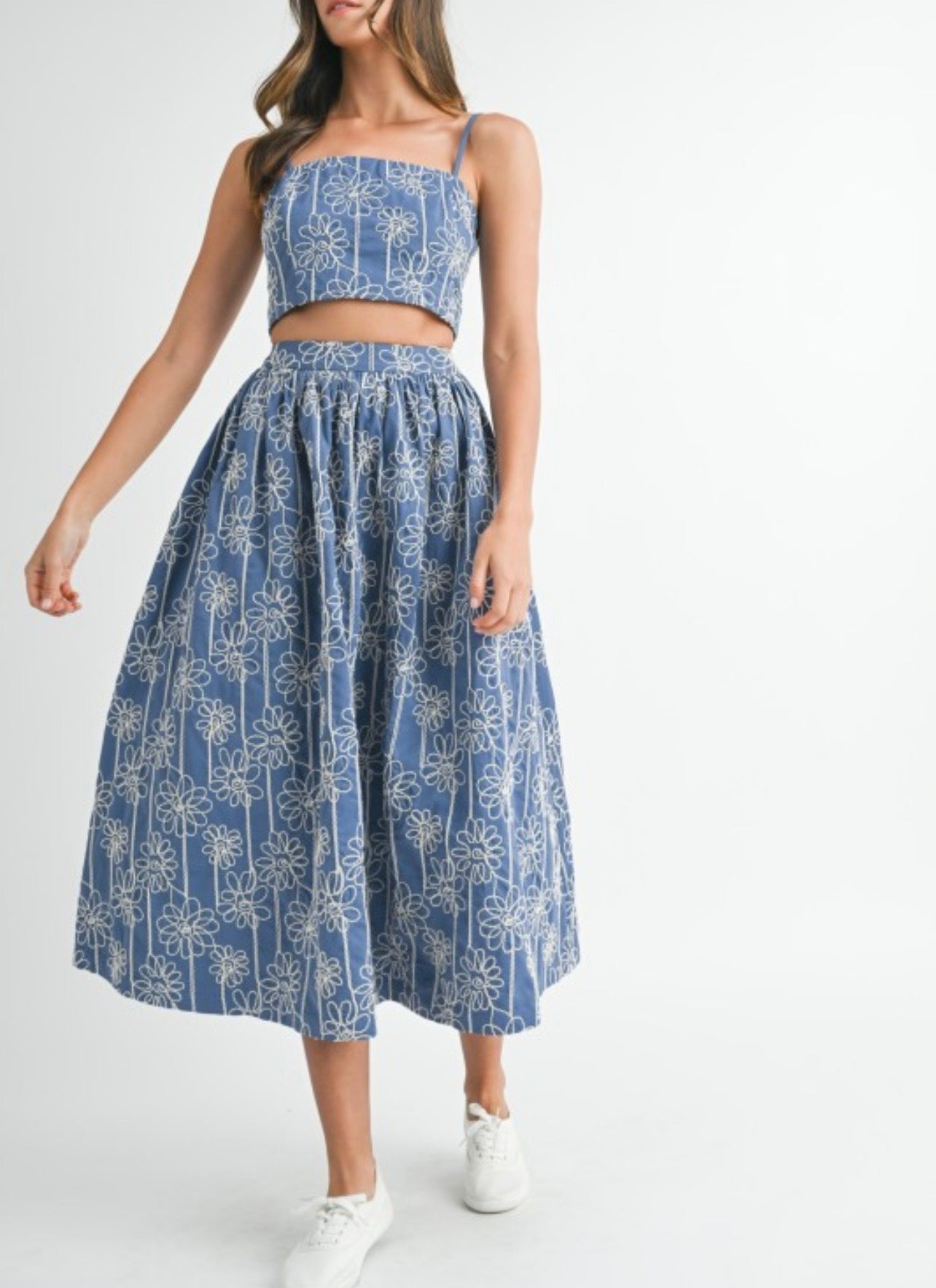 Denim Blue Floral Printed Estela Set