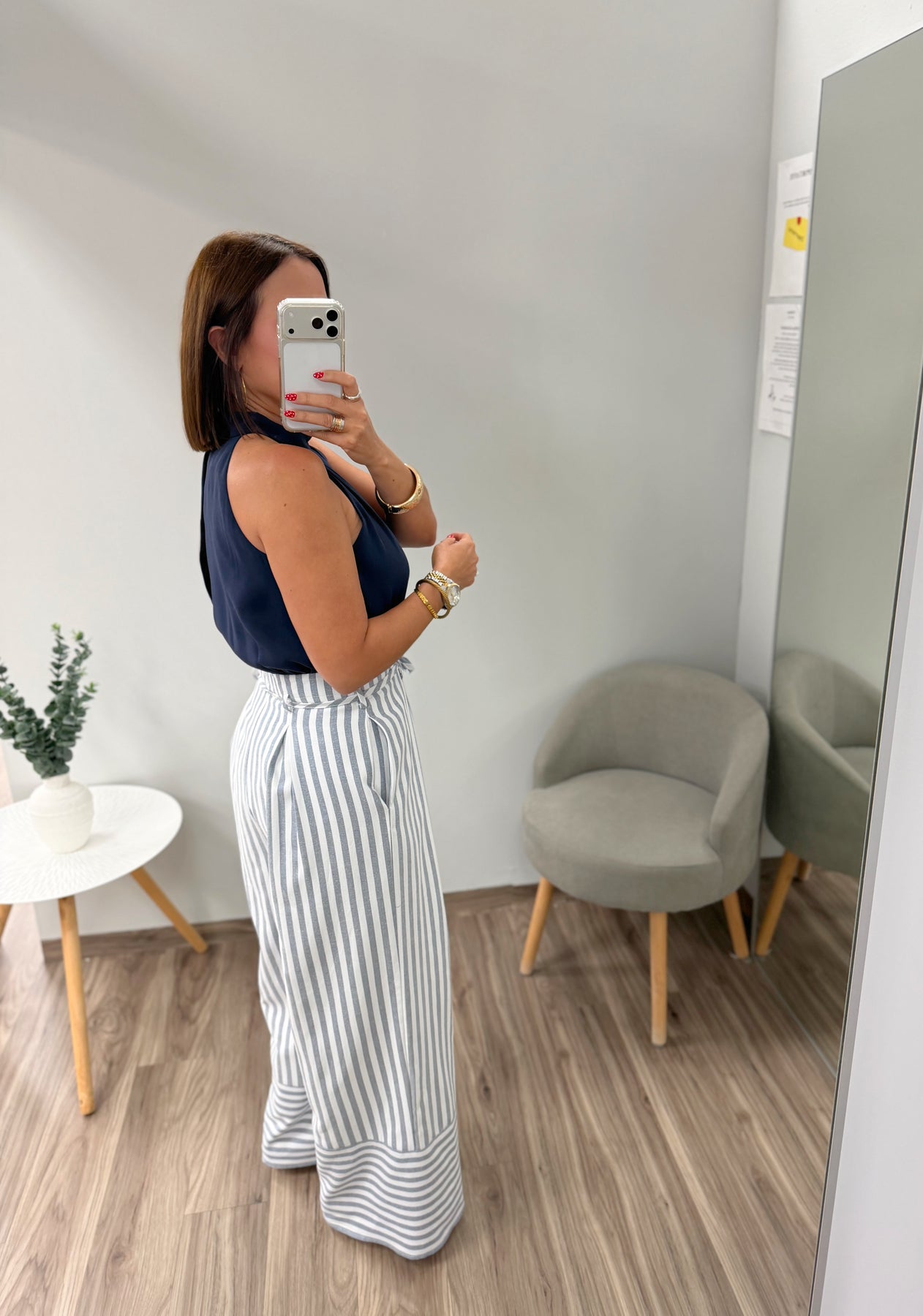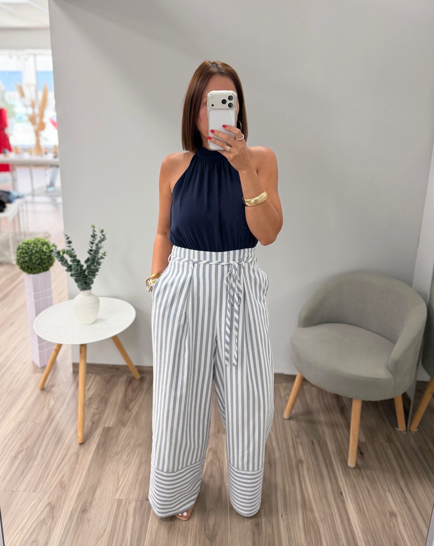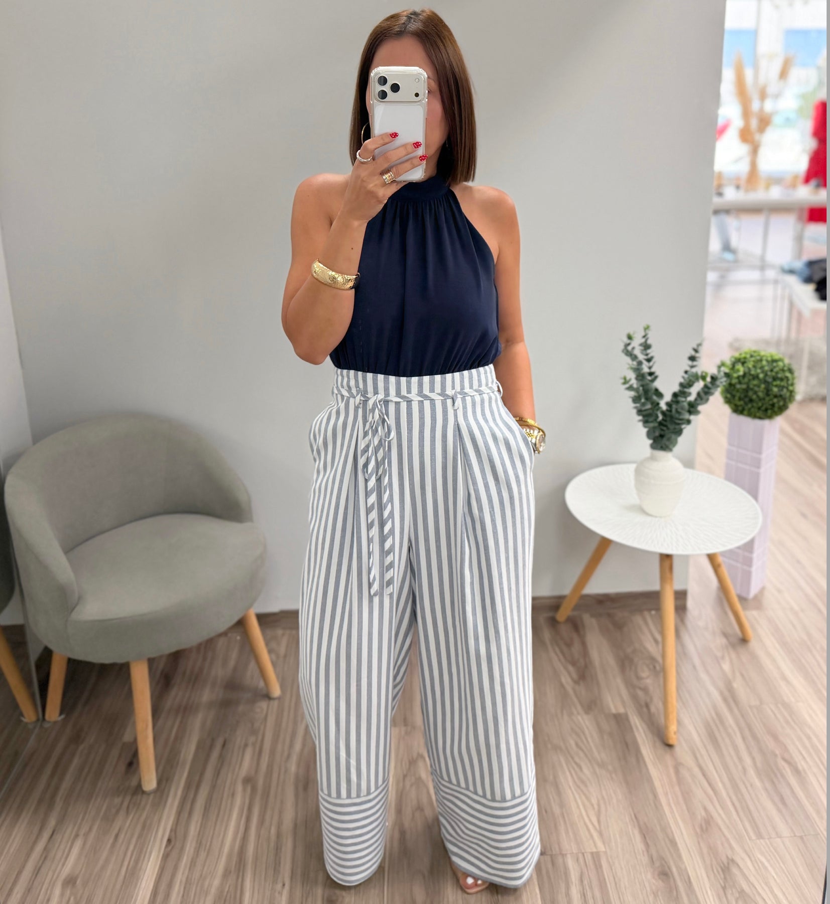 Navy Woven Solid And Striped Combo Sleeveless Jumpsuit